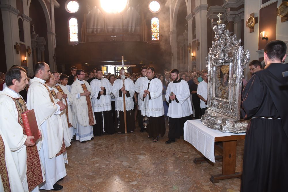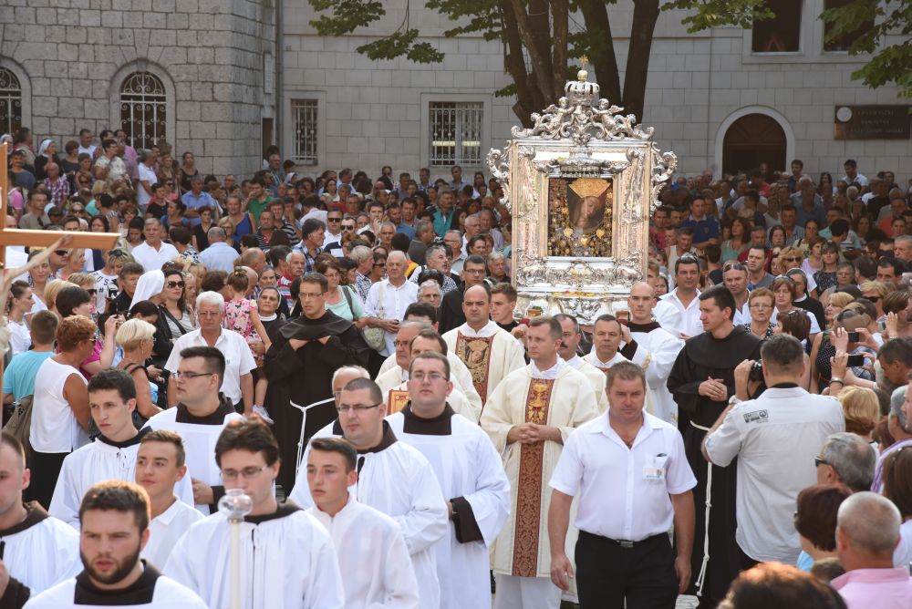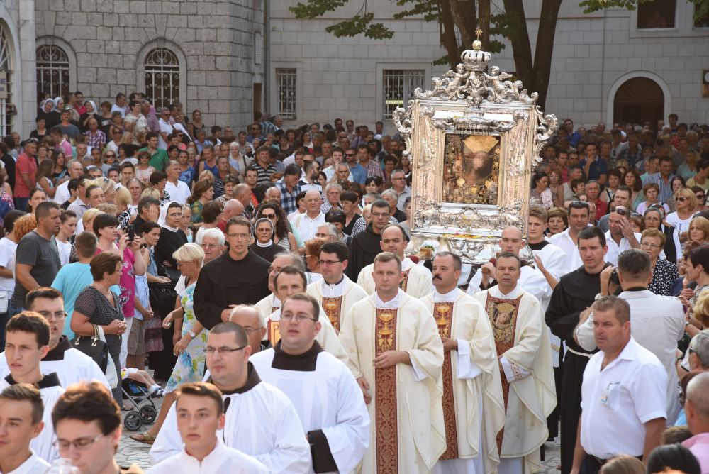 U predvečerje svetkovine Velike Gospe, 14. kolovoza 2015, slavlje Uznesenja Blažene Djevice Marije na nebo započelo je u 18.00 sati skidanjem Gospine slike i procesijom preko samostanskog dvorišta do Trga dr. Franje Tuđmana.