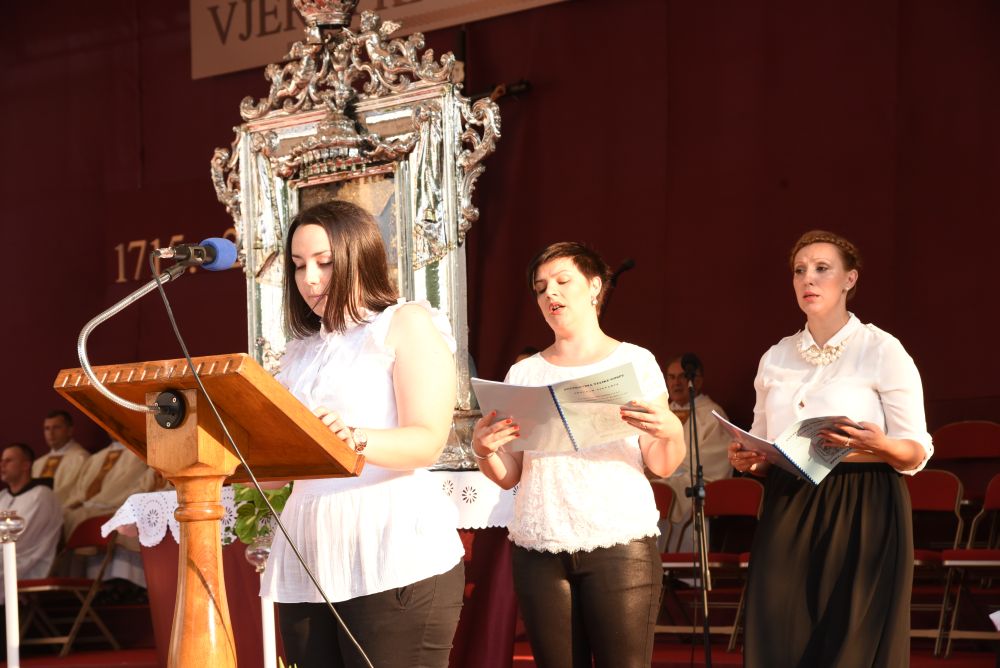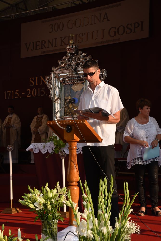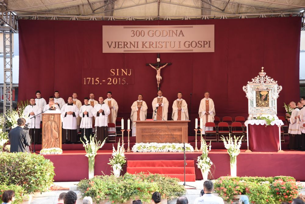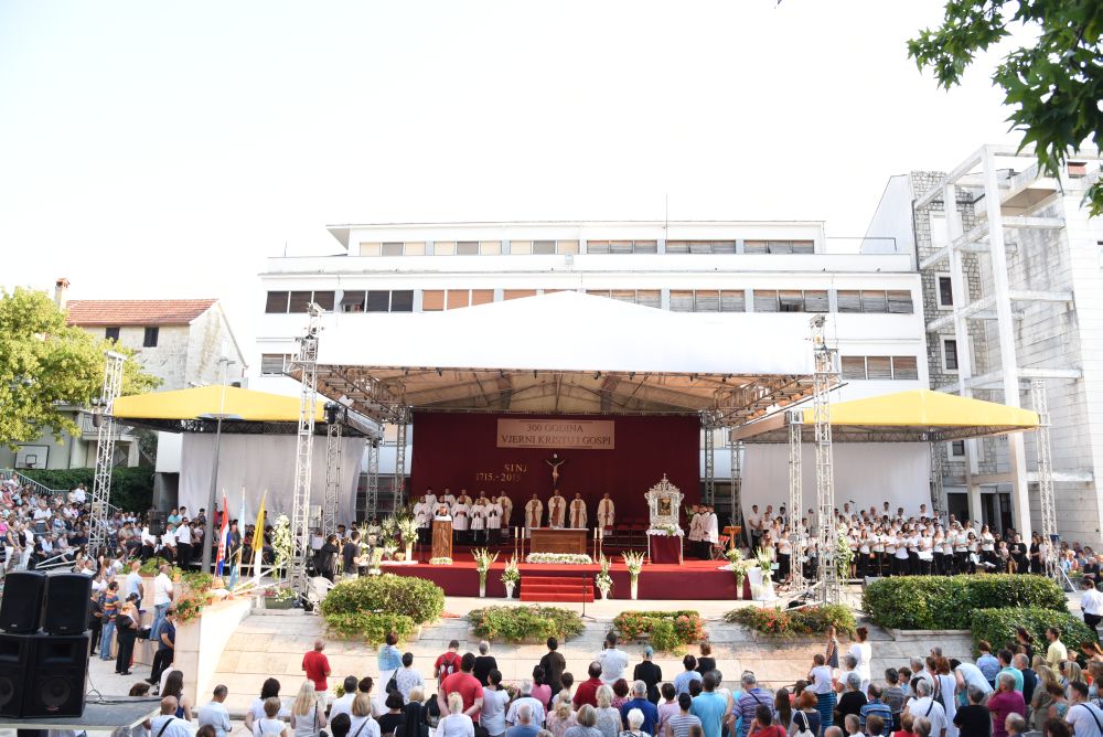 Dojmljive su bile Kardinalove riječi: „Želim se danas kao hodočasnik, braćo i sestre, pridružiti vama hodočasnicima koji ste danas došli našoj zajedničkoj Majci, Gospi Sinjskoj. Želim zajedno s vama i za vas moliti. Nosim vam zajedništvo i blizinu Crkve Zagrebačke. Nosim vam blagoslov iz Stepinčeve katedrale. On, Marijin hodočasnik, hodočastio je i u ovom svetište. On je s nama duhovno prisutan, on nas zagovara u svim našim potrebama, te nas ljubi nebeskom ljubavlju. Danas kada sam stigao osjetio sam da je ovdje crkva koja se moli, crkva koja se okuplja, od djece i mladih, od obitelji, roditelja, očeva i majki baka i djedova koji su došli s posebnim osjećajem i s jednom duhovnom obvezom da ispune zavjet pred Marijom. To je nešto što je dio nas. Bez hodočašća, bez slavlja, bez zajedništva se Marijom, Gospom Sinjskom mi ne bismo bili ono što jesmo. Ona je dio našeg identiteta. Mi smo njezini, ona je naša. To vjerujem da svake godine iznova osjećate, a osobito ove godine kada slavimo ovaj visoki jubilej zato neka dobri Bog blagoslovi vas i sve vaše, vas draga braćo i sestre, vas dragi Sinjani, vas vjernici ove dične biskupije splitsko- makarske, vas dragi hodočasnici, osobito vas iz Livna, Duvna i Rame“.