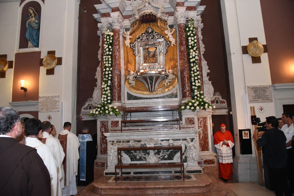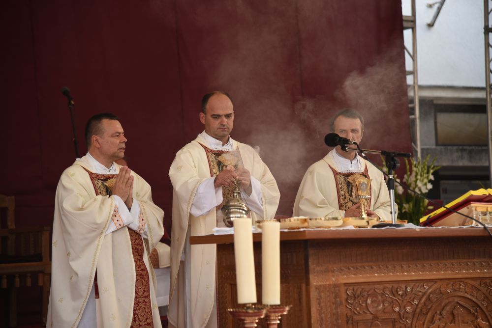 Slavljene samostanskih zvona i zvuk fanfara označila su skidanje Gospine slike s oltara i početak procesije. Sliku su nosili franjevački bogoslovi. Nakon ulazne pjesme, fra Ante Krešo Samardžić ispjevao je Pohvale Čudotvornoj Gospi Sinjskoj, a euharistijsko slavlje predvodio je fra Joško Kodžoman, provincijal Franjevačke Provincije Presvetog Otkupitelja. S njim su koncelebrirali, gvardijan i upravitelj Svetišta fra Petar Klapež, župnik fra Ante Bilokapić i drugi svećenici.