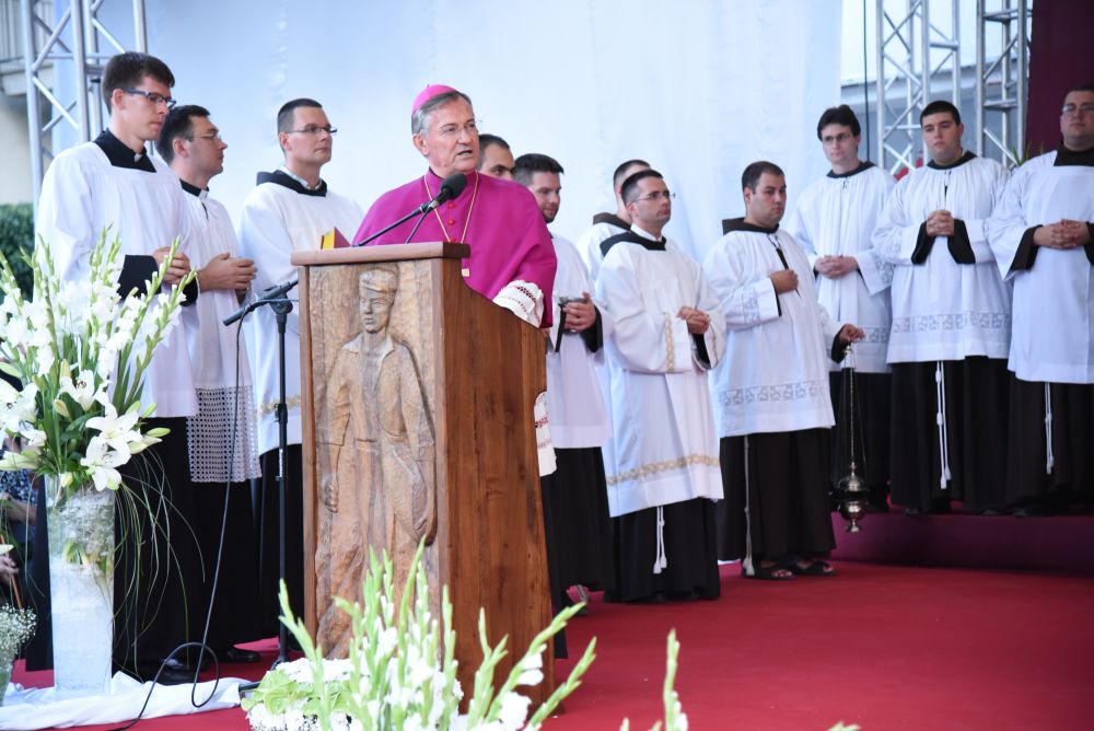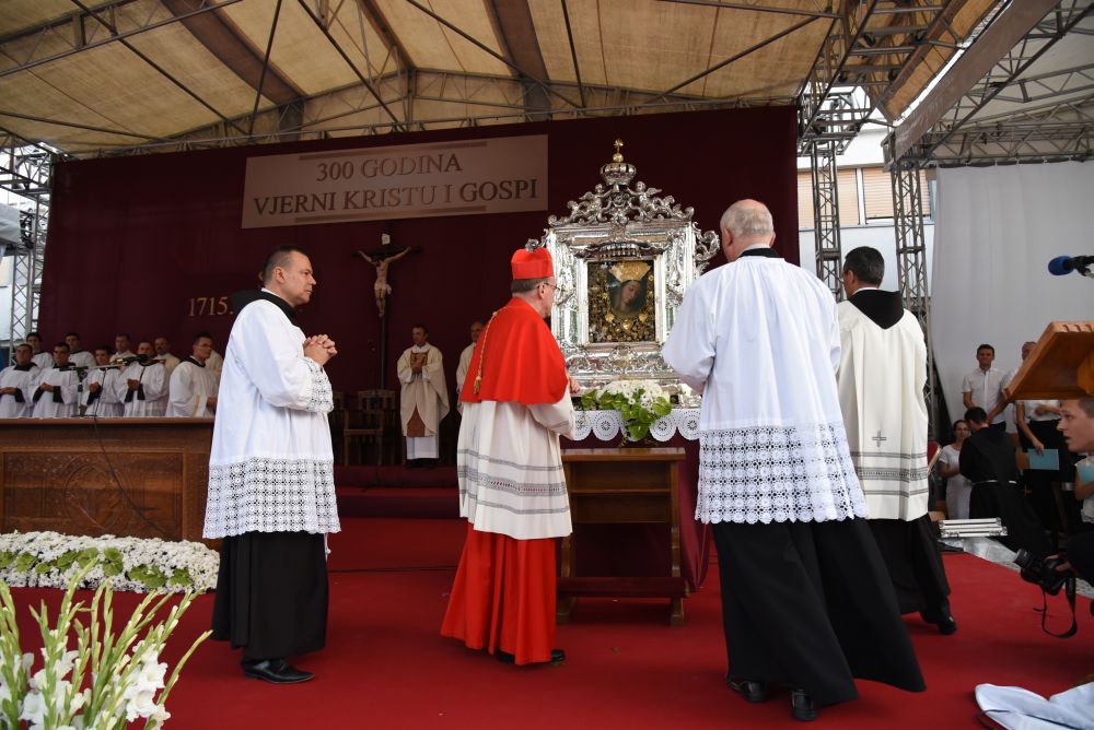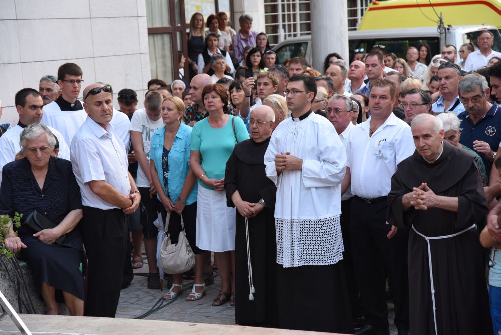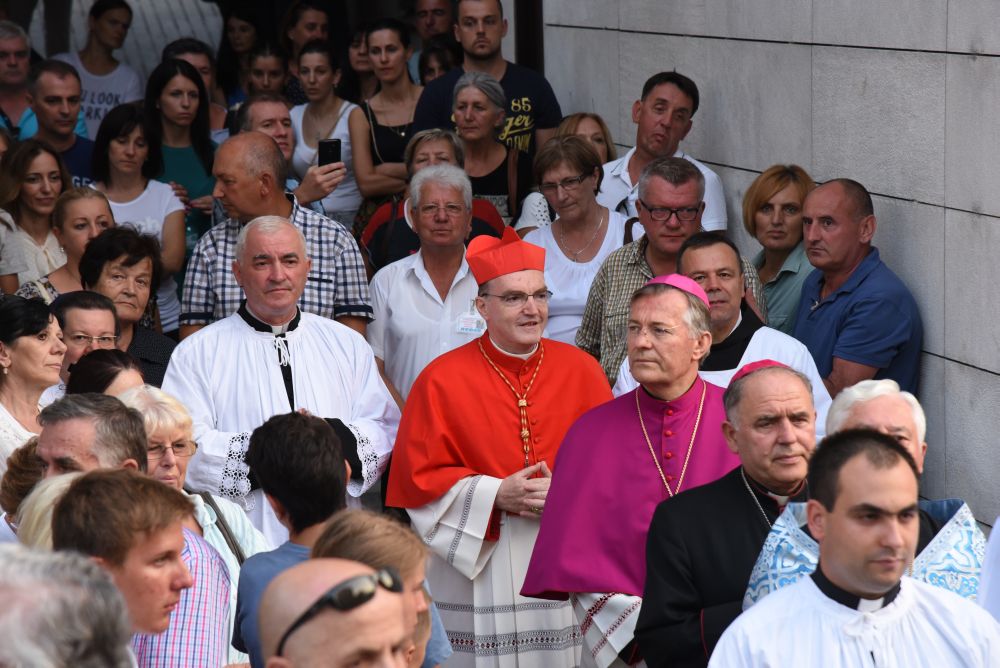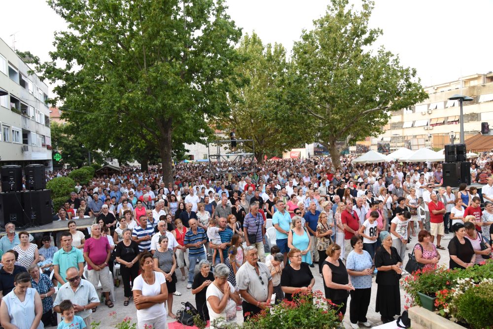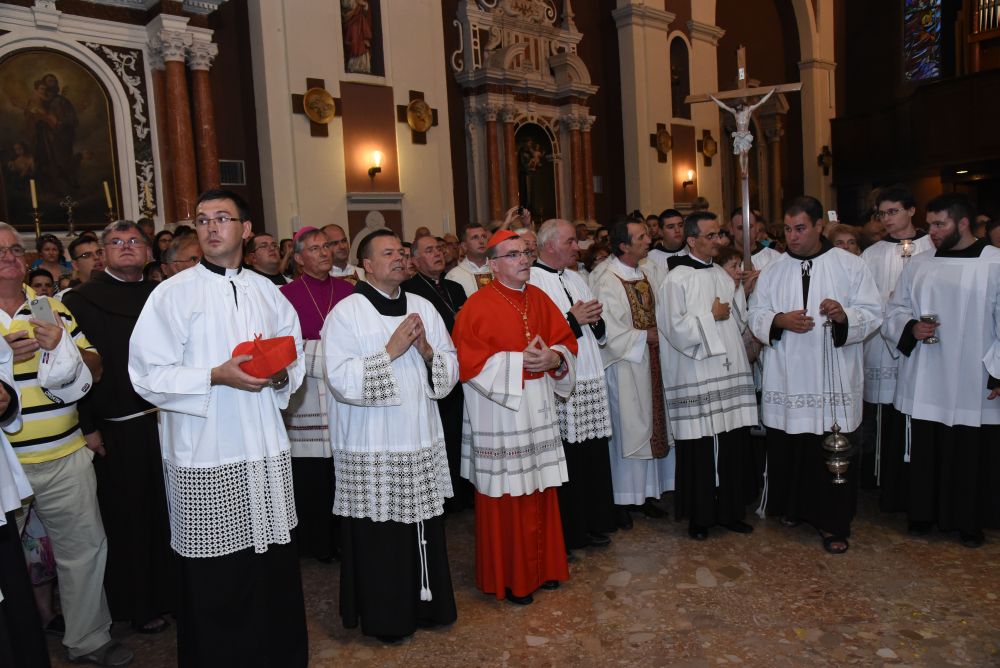 Nakon sv. Mise u pratnji našeg nadbiskupa mons. Marina Barišića, kotorskog biskupa Ilije Janjića, križevačkog vladike mons. Nikole Kekića, te službenih pratitelja, gvardijana fra Petra Klapeža i cetinskog dekana don Stipe Ljubasa, na trg dr. Frane Tuđmana gdje je održano večerašnjo slavlje došao je uzoriti kardinal Josip Bozanić.