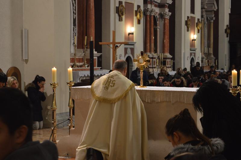 U nagovoru je don Damir okupljenima, ispričao kako je putujući avionom u jednom trenutku nastala velika turbulencija te su se putnici prestrašili i počeli zapomagati:“Bože pomozi, Bože oprosti“. Zanimljivo je kako su te riječi izgovarali i oni koji nisu vjerovali u Boga. Don Damir je htio naglasiti kako je važna svijest da je Bog živ i blizu bez obzira ako nam se nekad čini da je daleko. Bog strpljivo čeka naš odgovor jer nam daje slobodu i nikad nam se ne nameće, pa čak i onda ako se okrenemo protiv njega.U molitvi klanjanja pred Presvetim prve večeri duhovne obnove stavljen je naglasak na potpuno predanje sebe i svoga života Isusu te stavljanje cijelog sebe i svojih sposobnosti na raspolaganje Bogu moleći pri tom za iscjeljenja srca i duše, za oslobođenje i ozdravljenje.