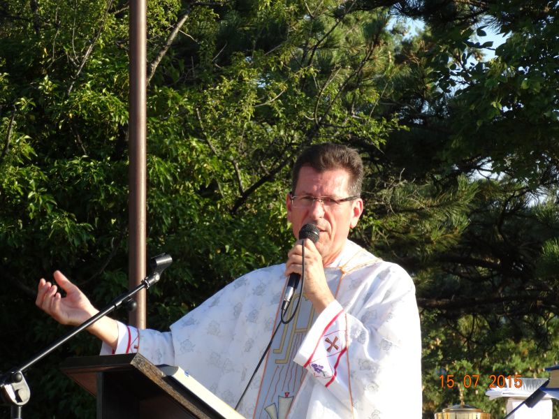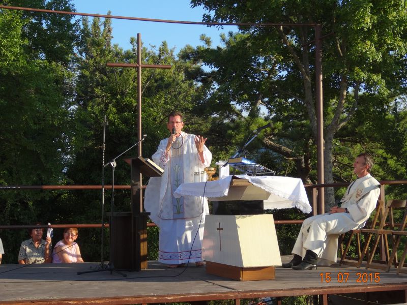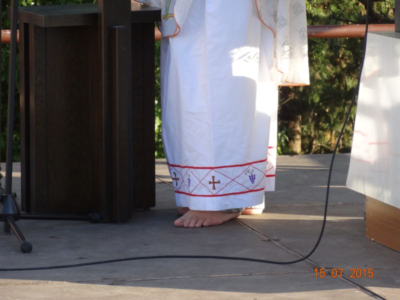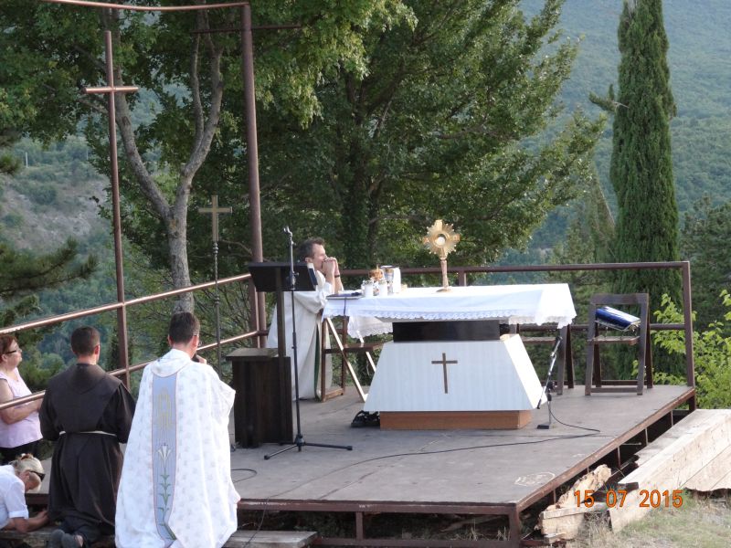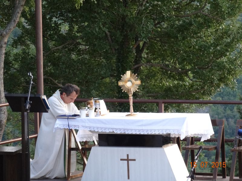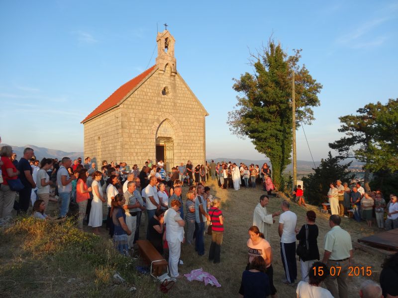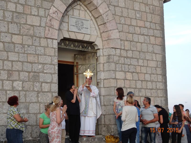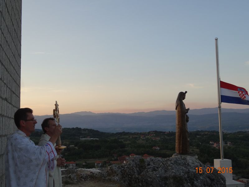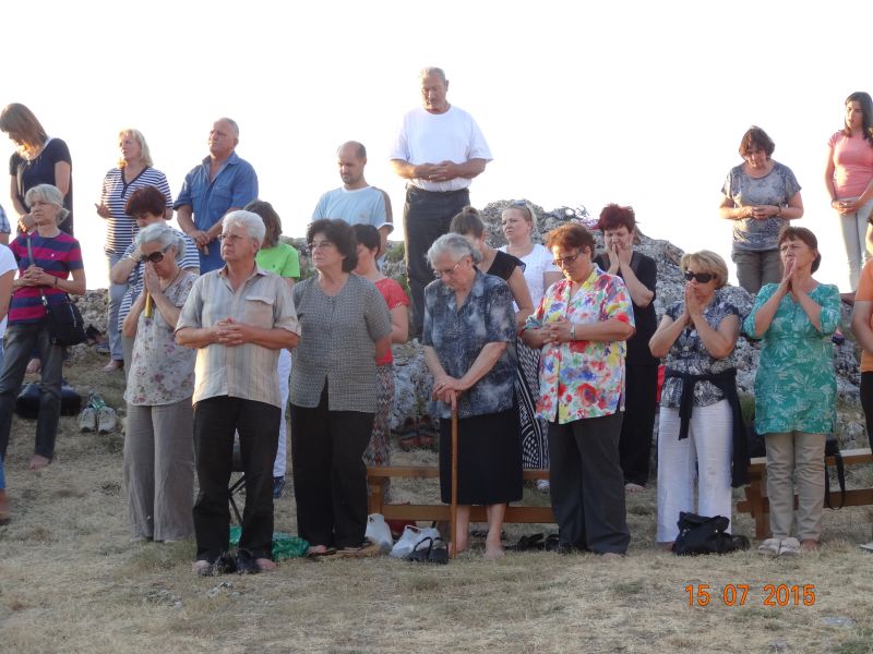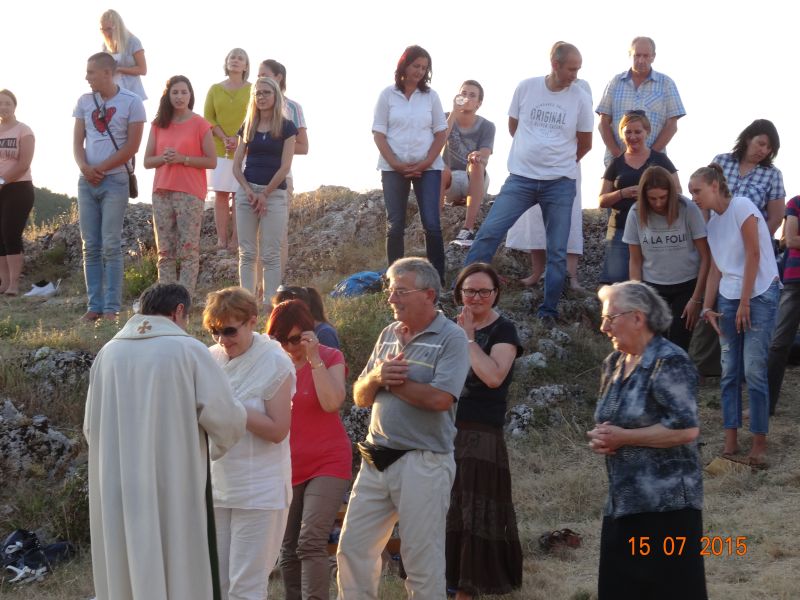 Uvodeći prisutne vjernike, koji su po nesnosnoj vrućini došli na Gospin Grad, u slavlje svete mise fra Ante im je nagovijestio da će u prvom čitanju čuti riječi koje je Mojsije čuo na Sinaju: Izuj obuću sa svojih nogu! Jer mjesto na kojem stojiš sveto je tlo. (Izl 3, 5). Ovo mjesto je za nas sveto tlo pa zato „u ovom biblijskom tekstu i susretu Mojsija s Bogom možemo prepoznati i ono što se nas tiče“. Pozvao je vjernike koji hoće i koji mogu da izuju svoju obuću i da misu slave bosi, što je i sam učinio. „Kad smo bosi, onda nije teško kušati kako smo ranjivi. Ne bismo mogli trčati bosi po Gradu niti niz Grad. Ni Mojsije ne bi bio mogao trčati po Sinaju bos i pobjeći od Gospodina. Kad ga je Jahve pozvao da izuje obuću, onda je to činio iz više razloga. Jedan od njih, a upravo njega nam valja posvijestiti na početku mise, je ljudska slabost, izloženost, ranjivost koja se proteže po cijelom tijelu, a bosi je osjećamo u dodiru sa zemljom. Ali, upravo je ta ranjivost mjesto susreta s Bogom. Nije mjesto susreta s Bogom tamo gdje sam ja najjači, gdje sve mogu, gdje mi je sve u ruci i sve se podvrgava mojoj volji. Najbliže sam Bogu tamo gdje sam ranjiv, izložen, slab. To je važno uočiti na početku mise. Crkva je ovo iskustvo zapamtila te nas uvijek iznova poziva da se s Bogom susretnemo polazeći od svojih najslabijih, grešnih strana, jer svijest o slabosti i grešnosti je pretpostavka da se susretnemo s Bogom. Kao što svijest o mojoj ranjivosti postaje živa kada sam bos i osjećam dodir sa zemljom, kad osjećam krhkost i ranjivost ljudskoga tijela, tako i blizinu Božju osjećam tamo gdje postajem svjestan svoje slabosti, svojih promašaja, svoje krhkosti i ranjenosti. Uz to se otvara i svijest za ranjenosti drugih ljudi, za krhost onih koji su nam blizu. Na početku mise pokajmo se najprije za to što ne opažamo ni svoju ni tuđu slabost i ranjivost iz Božje blizine, nego iz svoje ljudske krhkosti i oholosti. Zamolimo Boga da nam da snagu da se susretnemo sa svojom slabošću pred njegovim licem i da kroz večerašnju euharistiju produbimo odnos s njime.“