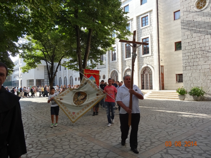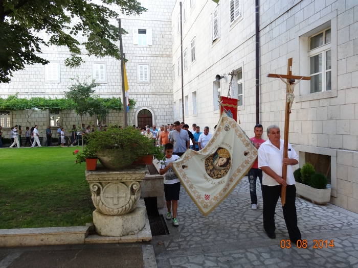U ime Svetišta hodočasnike je pozdravio sinjski župnik fra Ante Bilokapić. U svom pozdravu istakao je „vi ste ovdje na izvoru milosti, kod Majke koja najbolje zna sve naše potrebe. Zato pred njom izrecite sve ono što vam je na srcu, a naša zaštitnica Čudotvorna Gospa Sinjska bit će s vama i uz vas da vas prati svojim majčinskim zagovorom.“