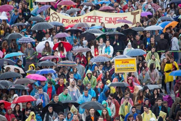 Na susretu mladih u Dubrovniku, 26. travnja 2014., sudjelovali su članovi Franjevačke mladeži i Zbora mladih Župe Gospe Sinjske. U šarenilu kabanica, hodajući po kiši, teško smo mogli doživjeti raskoš staroga grada. Loše vrijeme nije uspjelo pokvariti raspoloženje mladih, njih 35000 iz različitih dijelova Lijepe naše, Bosne i Hercegovine i Europe. To je se posebno moglo zapaziti u procesiji od Straduna do Gruža gdje je se pjesmom prkosilo kiši.